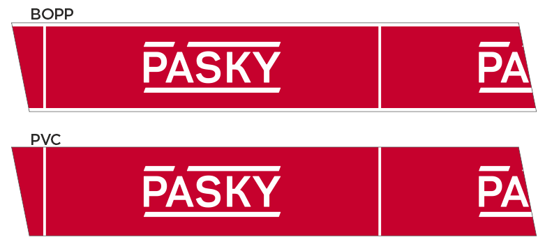BOPP - ein randabfallender Druck ist nicht möglich. Minimaler Abstand zum Rand beträgt 2 mm. Beispiel BOPP